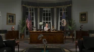 Depending on the player's choices during the game, President Warren will hold a live conference at the White House to either make peace with the androids and accept their existence as a new life form, declare war on them, or surrender to overwhelming android force and concede the new reality of a new intelligent life form. In addition, if public opinion is supportive, when Markus kisses North or sings when surrounded by U.S. Army soldiers at the barricade Warren will tell the military to stand down.[3] In the Opening Scene for the Batttle for Detroit, the player controls Warren during a press conference and can decide on which question(s) to answer.