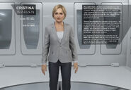 President Cristina Warren is one of the two overarching antagonists (alongside Elijah Kamski) of Detroit: Become Human. She is the President of the United States in 2018.